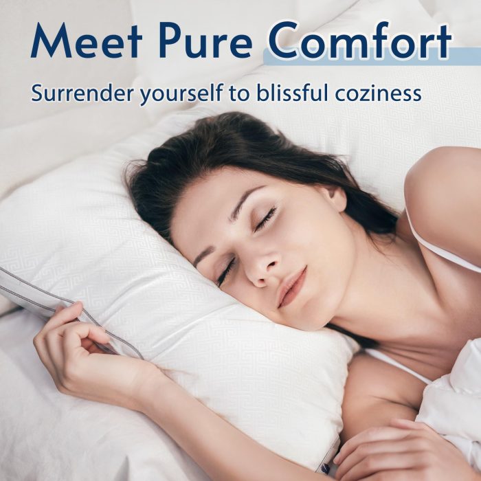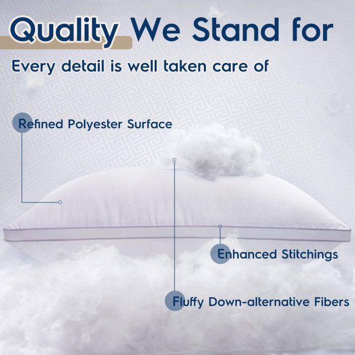 • All-the-time Fluffy: The generously filled pillows stay plump all night long for undisturbed sleep and retake shape soon after you tear yourself away. The no-shift construction and sturdy double-stitches resist flattening for long-standing enjoyment